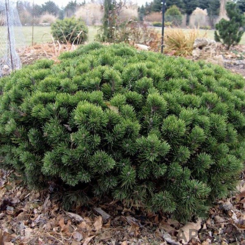 Nízka borovica horská s hustým hniezdovitým tvarom vhodná do skaliek, menších záhrad a nádob.