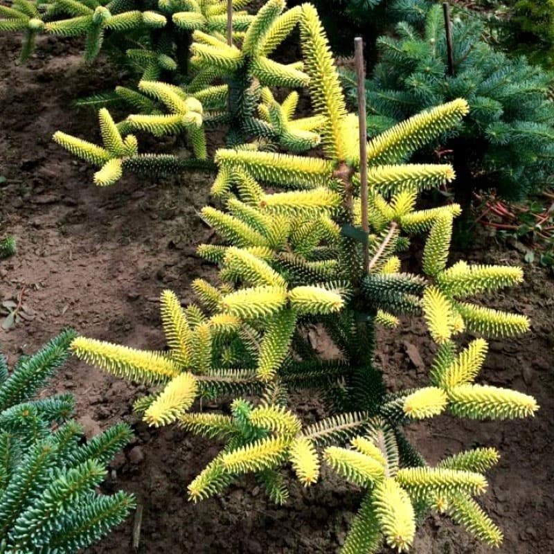 Stálezelená jedľa so zlatožltými ihlicami a kužeľovitou korunou, ideálna ako výrazný solitér do záhrad a parkov.