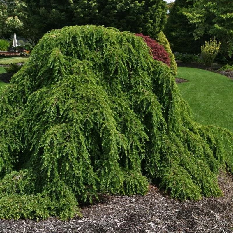 Jedlovec kanadský Pendula, Tsuga canadensis Pendula je výrazná, stálezelená ihličnatá drevina s nepravidelným, silne previsnutým rastom, ktorá pôsobí mimoriadne dekoratívne a architektonicky. Tento kultivar je vyhľadávaný pre svoj originálny tvar a elegantne splývavé vetvy, vďaka čomu sa stáva dominantným solitérom v záhradách a parkových výsadbách. Ihlice sú krátke, jemné, mäkké na dotyk a majú tmavozelenú farbu s jemným leskom. Spodná strana ihlíc je svetlejšia s bielymi pruhmi, ktoré zvyšujú dekoratívnu hodnotu rastliny počas celého roka. Previsnuté konáre vytvárajú malebný vzhľad a prirodzene tvarovanú siluetu. Jedlovec kanadský Pendula preferuje polotienisté až tienisté stanovište, chránené pred priamym slnkom a silným vetrom. Najlepšie sa mu darí v humóznych, mierne vlhkých a dobre priepustných pôdach. Neznáša dlhodobé sucho ani premokrenie. Tento kultivar je veľmi dobre mrazuvzdorný a znáša aj rez, ktorý je možné využiť na usmernenie rastu. Vďaka svojmu jedinečnému previsnutému tvaru je ideálny ako solitér, do okrasných záhrad, parkov a reprezentatívnych výsadieb, kde vytvára výrazný vizuálny prvok.